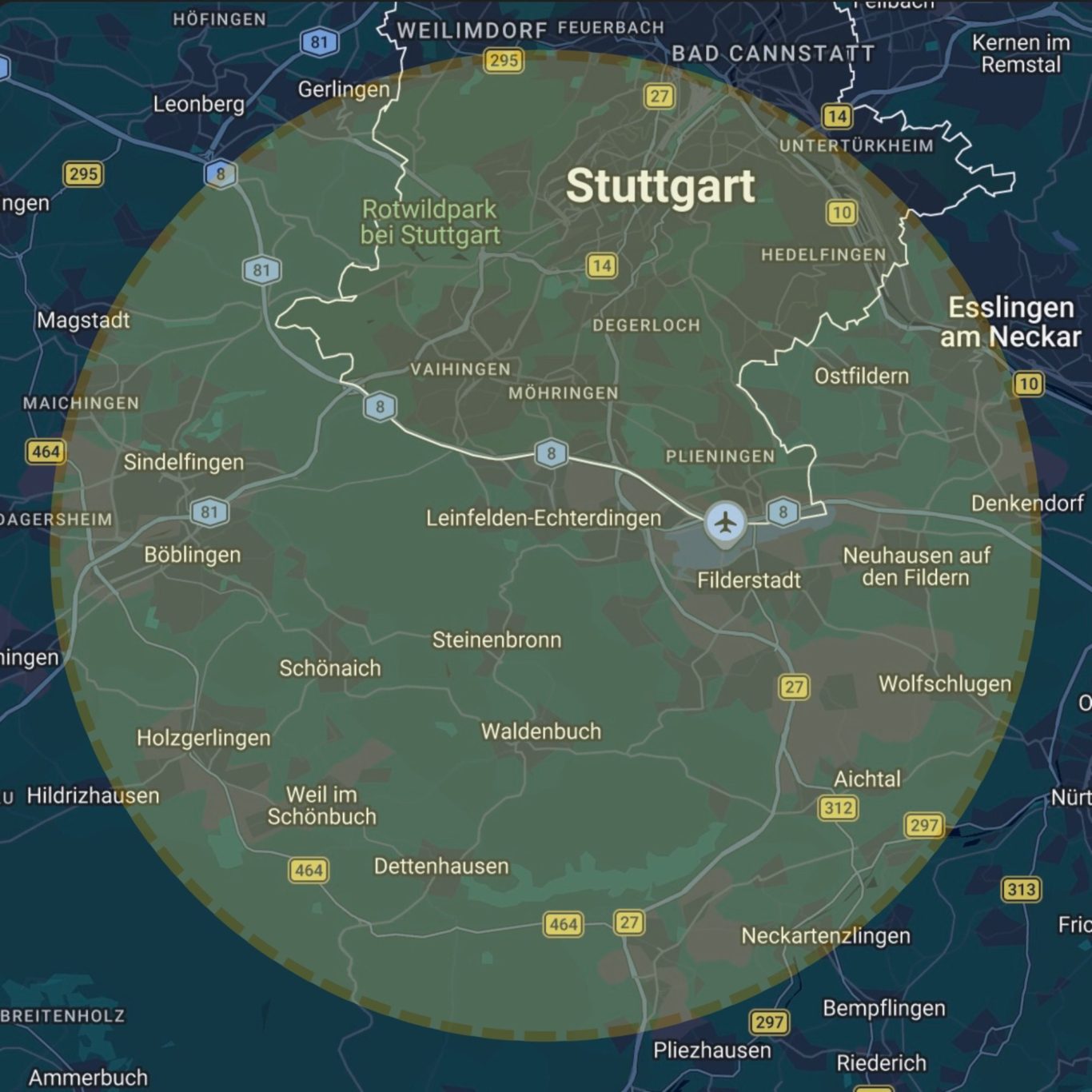 Wir sind in Stuttgart und Umgebung für euch unterwegs - im Umkreis von etwa 15 km.